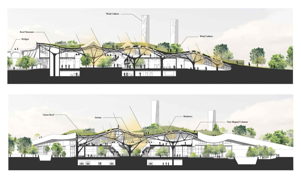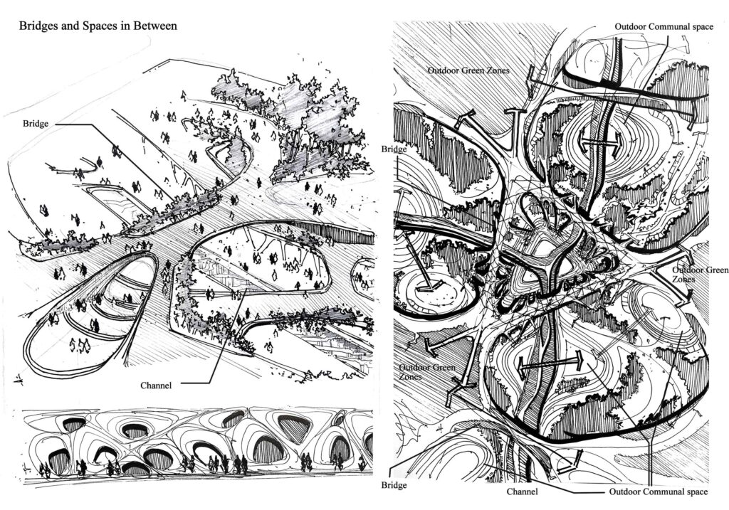 This project reclaims the infrastructural void between two highways and a canal in central Tehran by transforming it into a blue-green civic corridor that reconnects neighbourhoods and habitats while restoring the Alborz-fed stream. Blending circular urban systems (water, materials, energy) with a bio-digital toolkit (sensing, open data, digital twin), the design prioritises biodiversity, thermal comfort, and equitable public space. As a replicable prototype for Middle-Eastern megacities, Neropolis demonstrates how ecological restoration and smart urbanism can co-produce resilient, culturally rooted public realms.